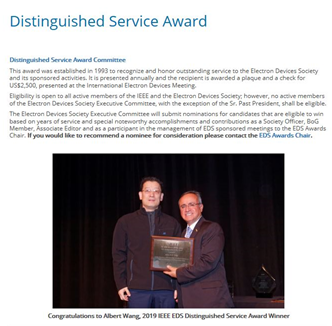 Electron Devices Society, September 13, 2025: Prof. Albert Wang was selected to serve as the Editor-in-Chief